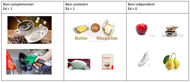 Se il valore è minore di 1 si parla di beni complementari. Il consumo di un bene dipende dal consumo di un altro e quindi il prezzo di quest’ultimo lo influenza. In questo caso se il prezzo della benzina aumenta probabilmente l’acquisto di automobili diminuisce.